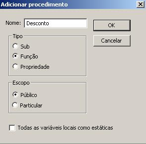 Antes de mais nada, você deverá criar um módulo Menu Inserir Módulo. Como a subrotina, você poderá escreve-la ou acessar o Menu Inserir / Procedimento. Neste caso, selecione Function.